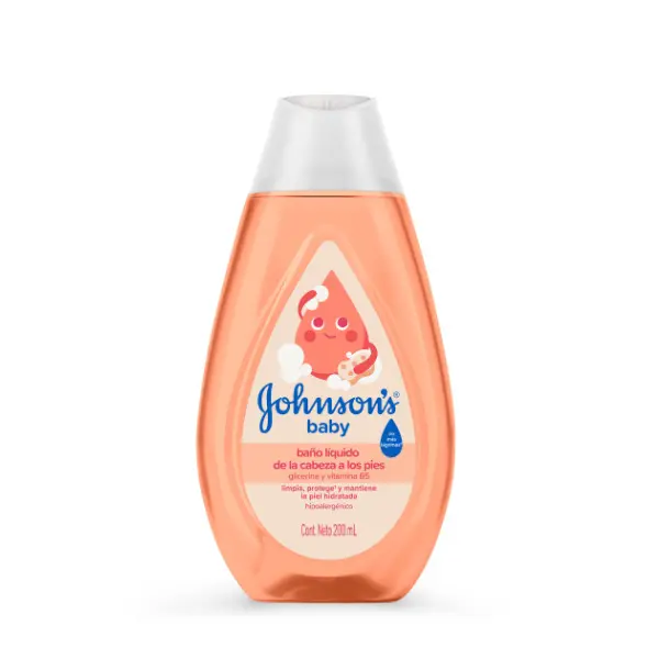 El Baño Líquido JOHNSON’S® de Glicerina posee una fórmula tan suave para los ojos, la piel y el cabello del bebé, como el agua pura. Con pH fisiológico, es hipoalergénico y libre de parabenos, sulfatos, colorantes y ftalatos. Su composición ayuda a proteger la barrera natural de la piel, proporcionando así, el cuidado necesario para la hora del baño. Coloque una pequeña cantidad de jabón en las manos.