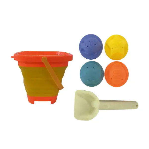 BALDE PLEGABLE, PALITA, 4 MOLDES Y RASTRILLO.